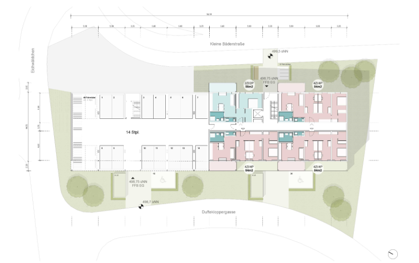 Unser Beitrag basiert auf unserem Konzept „EINFACH bauen!“, mit dem wir eine effiziente Lösung für kostengünstigen, förderbaren und zugleich funktionalen Wohnungsbau geschaffen haben. Auf Grundlage dieses Konzepts entwickelten wir unseren Beitrag für die Mehrfachbeauftragung im Rahmen des Exzellenzclusters günstiger Wohnungsbau RTK. Ein strukturierter, flexibler Grundriss mit gut nutzbaren Wohnräumen, 100 % gemäß den Förderrichtlinien geplant, ist die Basis für unseren Entwurf. Wir entwickelten daraus eine ausdrucksstarke Architektur als klare Kubatur mit leicht geneigtem Dach.